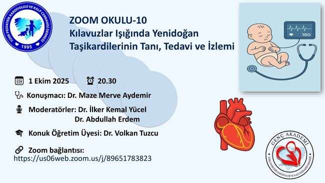 ZOOM OKULU-10: “Kılavuzlar Işığında Yenidoğan Taşikardilerinin Tanı Tedavi ve İzlemi” 1 Ekim 2025 saat 20.30 da online yapıldı.