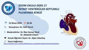 Türk Pediatrik Kardiyoloji ve Kalp Cerrahisi Derneği öncülüğünde yürütülen Zoom Okulu eğitim serisinin on yedinci oturumuna sizleri davet etmekten memnuniyet duyuyoruz.